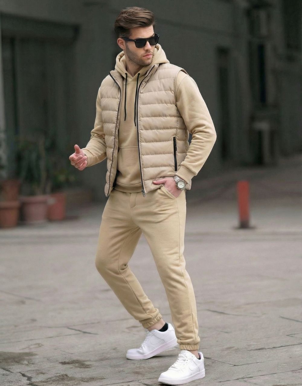 Ensemble streetwear élégant et confortable. Parfait pour les amateurs de mode urbaine, cet ensemble comprend un gilet matelassé léger + un sweat à capuche moderne + un pantalon jogging. Idéal pour un look casual ou sportif, tout en restant tendance et pratique.