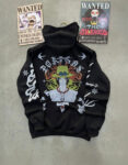 Sweat à capuche blanc inspiré de One Piece avec une illustration d’Ace en silhouette blanc.