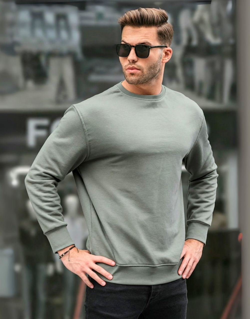 Sweat Essentiel Col Rond Molleton Gratté – Vert Sauge Clair